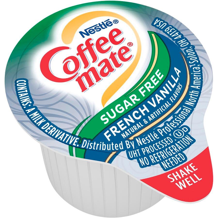 Coffee mate Sugar Free French Vanilla Liquid Creamer Single comes in a single serve pack and requires no refrigeration. It is free from cholesterol, lactose, gluten and is sold as 50 per pack.Features