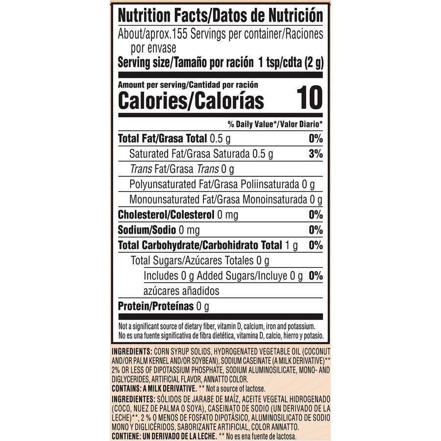 Coffee mate Original Creamer Canister with 11 ounce capacity provides creamy texture and rich taste to your toothsome. Creamer with its simple stir action helps in eliminating spoilage issues. It dissolves quickly and easily without cooling coffee or diluting. It contains lactose-free, gluten-free and zero cholesterol ingredients. It comes in a unique canister that ensures easy and hygienic pouring.