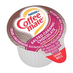 Coffee mate Salted Caramel Chocolate liquid creamer combines rich, creamy chocolate with delightful salted caramel for a decadent experience. The single-serve cups in a convenient dispenser are great for your breakroom or reception area. With this popular creamer in the office, everyone can enjoy coffeehouse indulgence without ever leaving the building. No refrigeration is necessary. Creamer is Kosher Dairy, lactose-free and gluten-free.