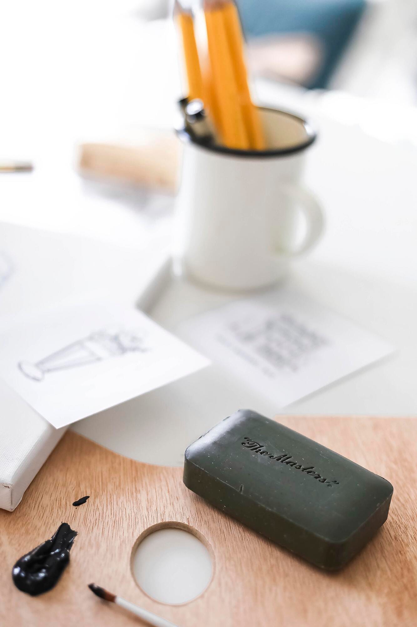 The Masters® Artists (Hand) Soap removes paint stains, grease, inks, and more. Perfect for cleaning up after painting, crafting, gardening, or even working on the car. Specially formulated, this soap makes cleaning up safe and easy, while keeping your hands soft and fresh smelling. Lanolin Free. Fresh spearmint scent. 4-1/2 Ounce Bar.Features