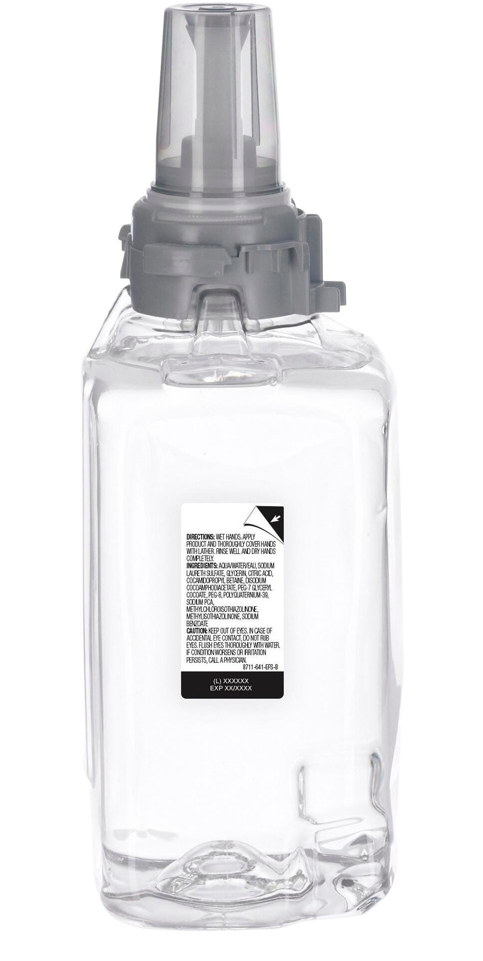 GOJO Clear/Mild Foam Handwash Refill is made of recyclable PET material, using 30% less plastic offering good durability. Bio-based refill featuring fragrance-free, dye-free formula is uniquely designed for use in GOJO ADX-12 manual soap dispensers. 1250 ml Sanitary-sealed refill delights the users while supporting a healthy environment. Patent-pending, controlled-collapse GOJO refill holds its shape as it empties for a more attractive look.