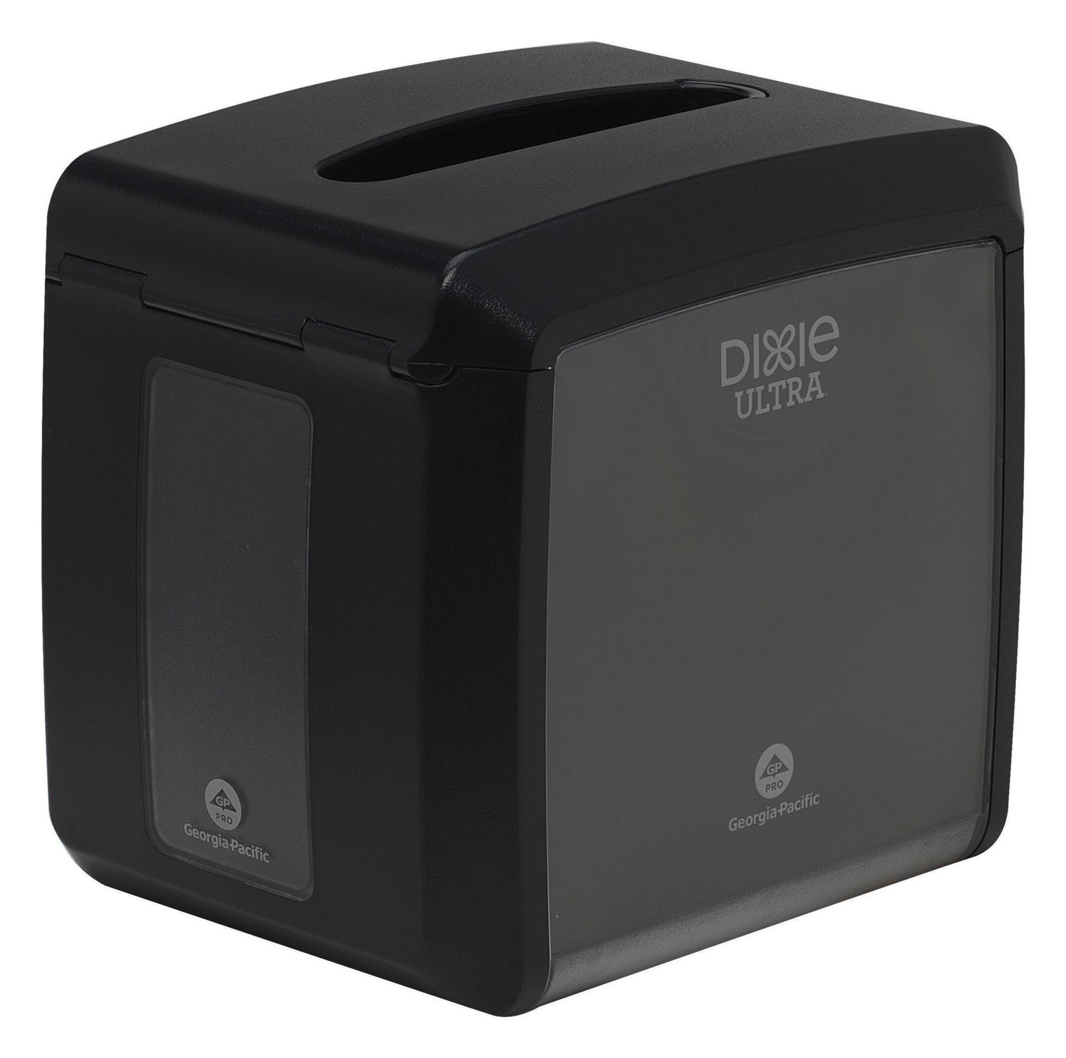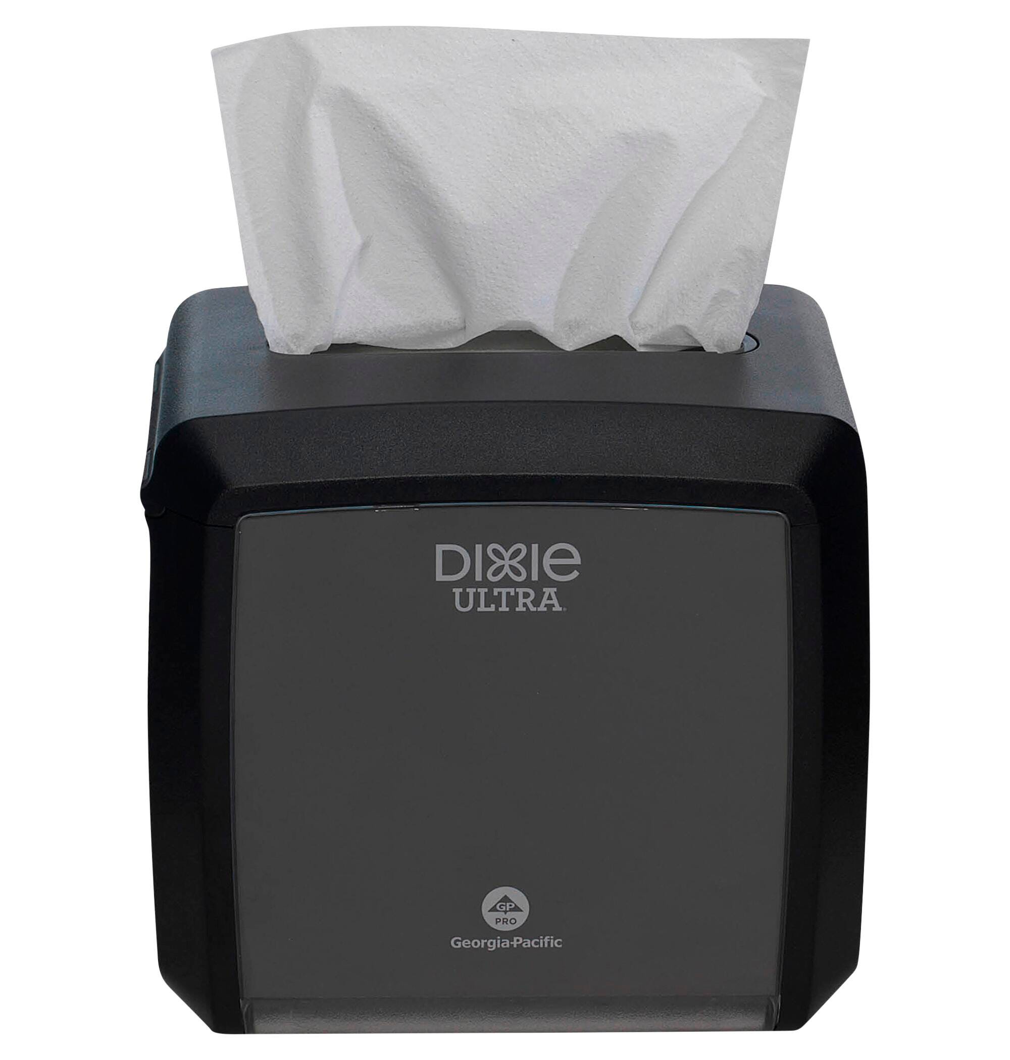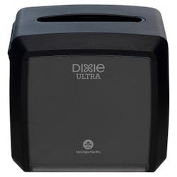 Not only does this napkin dispenser reduce waste by 29 percent, it also features a new latch system that makes loading two-ply, interfold napkins as easy as lifting a finger. Customizable advertisement windows let you showcase your company's logo and marketing message to promote your unique brand. Rubber feet provide greater slip-resistance to sit securely on tabletops when accessing napkins. Refill window helps operators quickly see when it's time to reload to prevent unexpected depletion. Napkin dispenser is designed to hold up to 275 Dixie Ultra Two-ply interfold napkins (sold separately).