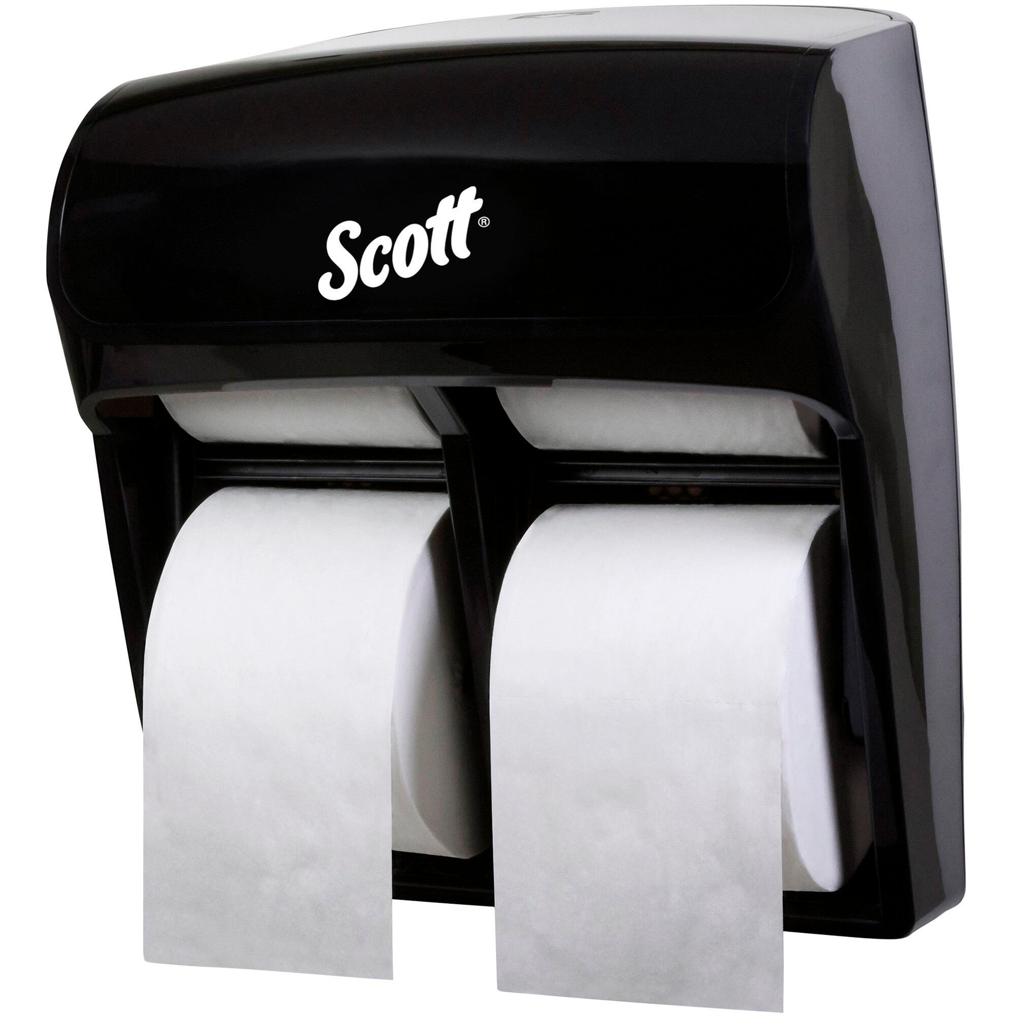 Single-roll bathroom tissue dispenser is more compact than leading high-capacity SRB systems. It is made of durable plastic and holds four rolls of Scott or Cottonelle coreless bathroom tissue, and Scott Small Core tissue. Tissue dispenser is designed to deliver an exceptional experience as well as provide consumption control in high-traffic facilities. The dispenser features include an H-mandrel to easily advance from one roll to avoid outages. When installed properly, this dispenser meets ADA standard 28 CFR, Part 36.