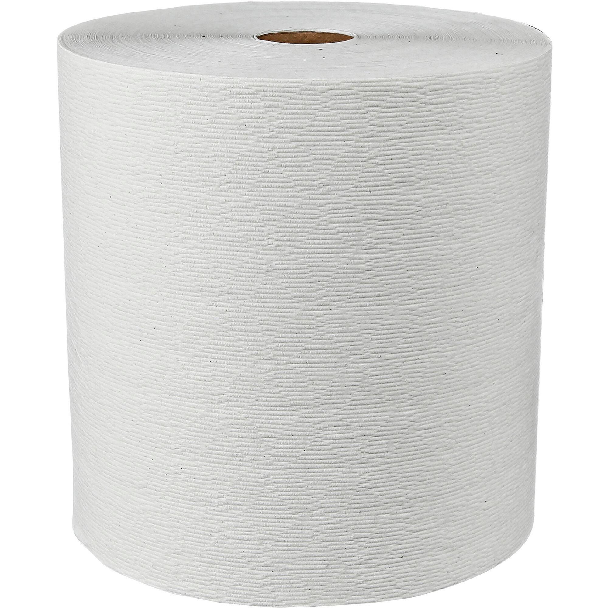 Scott White Non-perforated Hard Roll Paper Towel measuring 8 inches x 600 feet fits hard-roll towel dispensers that can accommodate rolls with a 7-7/8 in Dia. Towel features absorbency pockets that absorb more water faster to provide quick hand-drying. It is sold as 6 per pack.Features