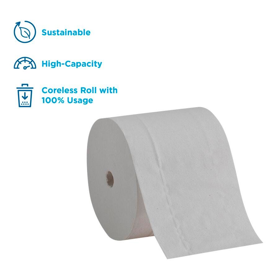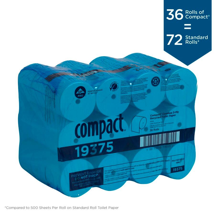 Compact Coreless 2-Ply White Refill is specifically designed to fit compact tissue dispensers. It has design that increases tissue capacity while optimizing storage space and is sold as 36 per pack.