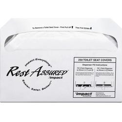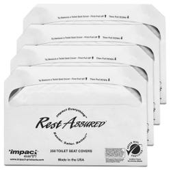 Impact Products Toilet Seat Cover features 100 percent bio-degradable construction while being septic system safe. Seat cover offers enhanced protection against e-coli, staph, herpes and other infections that can be passed by contact with public toilet seats. Toilet seat cover is sold as 4 packs of 250 each per carton.