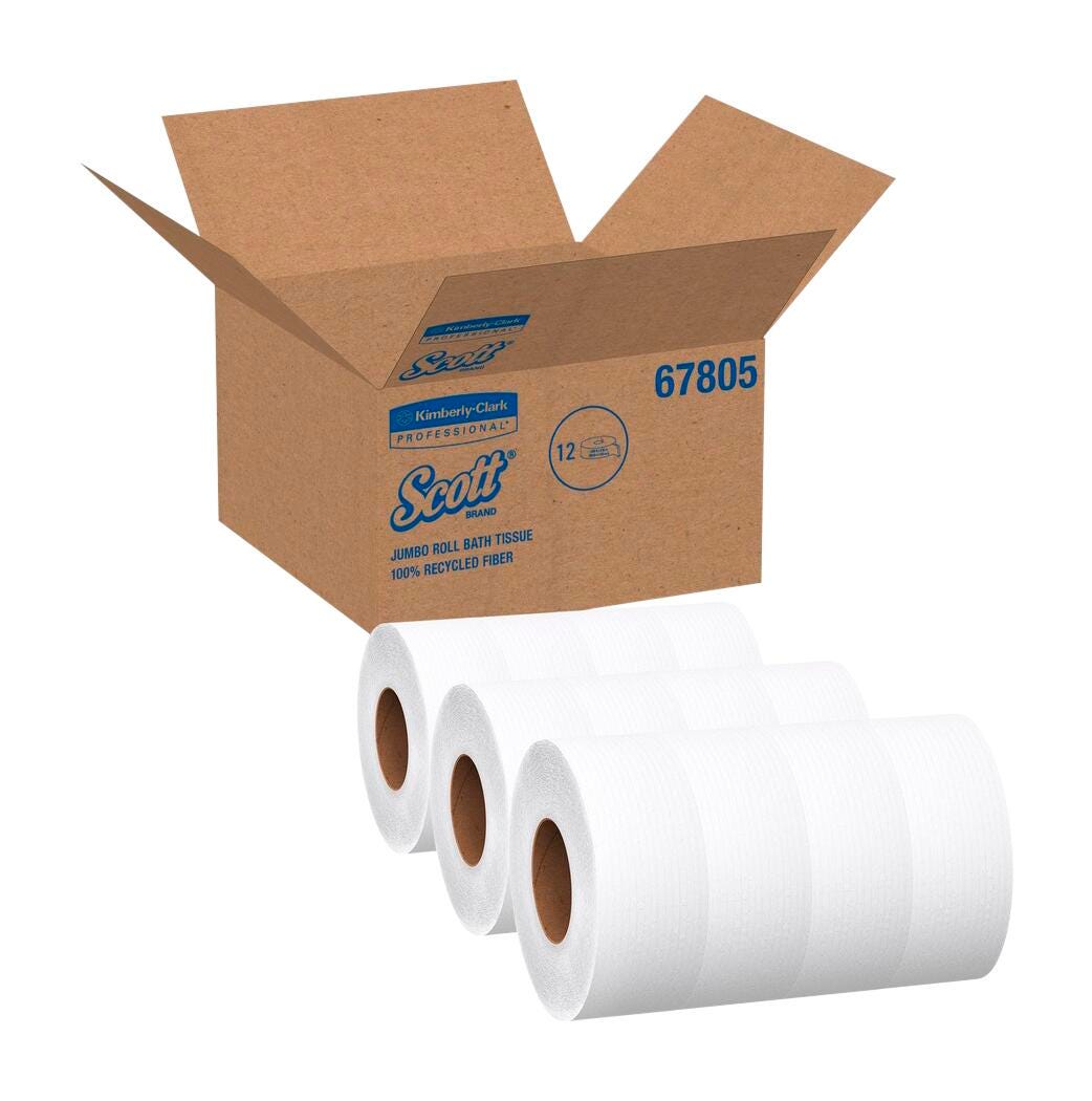 Scott Essential Jumbo Roll Bathroom Tissue provides the ideal blend of quality, value and reliability. This two-ply bathroom tissue offers 1,000' per nonperforated roll for a high-capacity solution to reduce the risk of runouts. It is EcoLogo and FSC certified, and meets EPA guidelines for minimum post-consumer waste content. Measures 3.55 Inches x 1000 Feet.