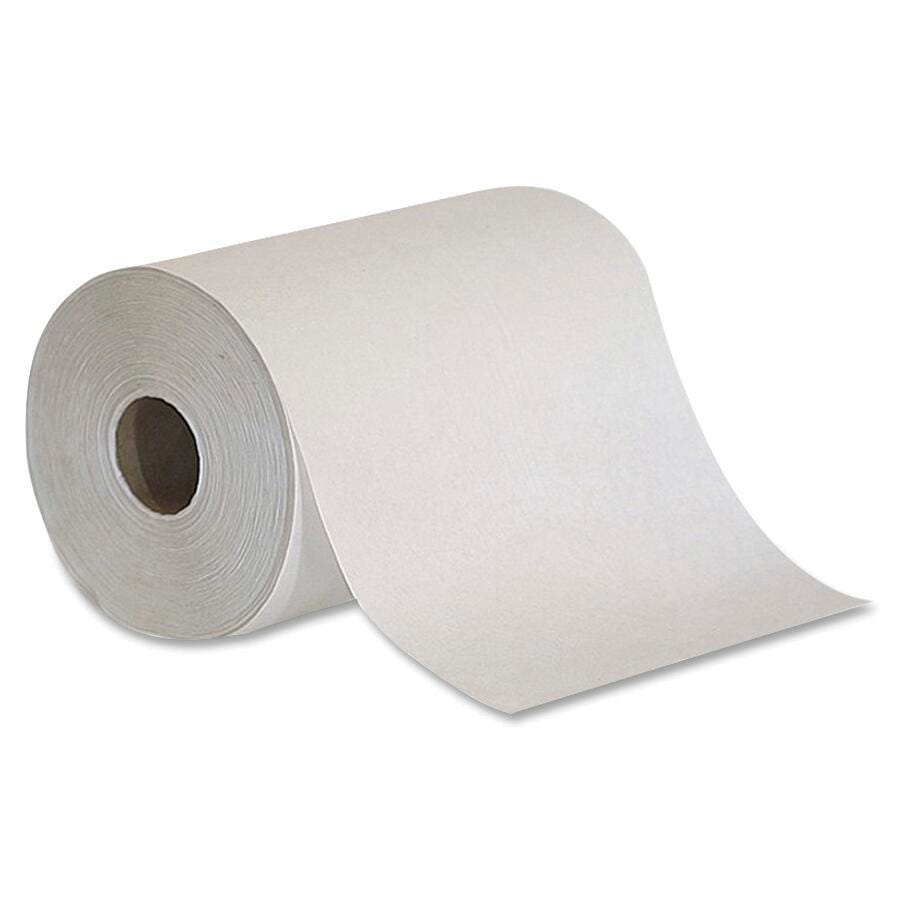 Georgia Pacific Envision White Non-perforated Roll Towel measuring 7-7/8 inches x 350 feet is suitable for use in most dispensing systems. It has a minimum of 95% recycled content and 40 percent post-consumer materials. Roll towel is sold as 12 per pack.Features