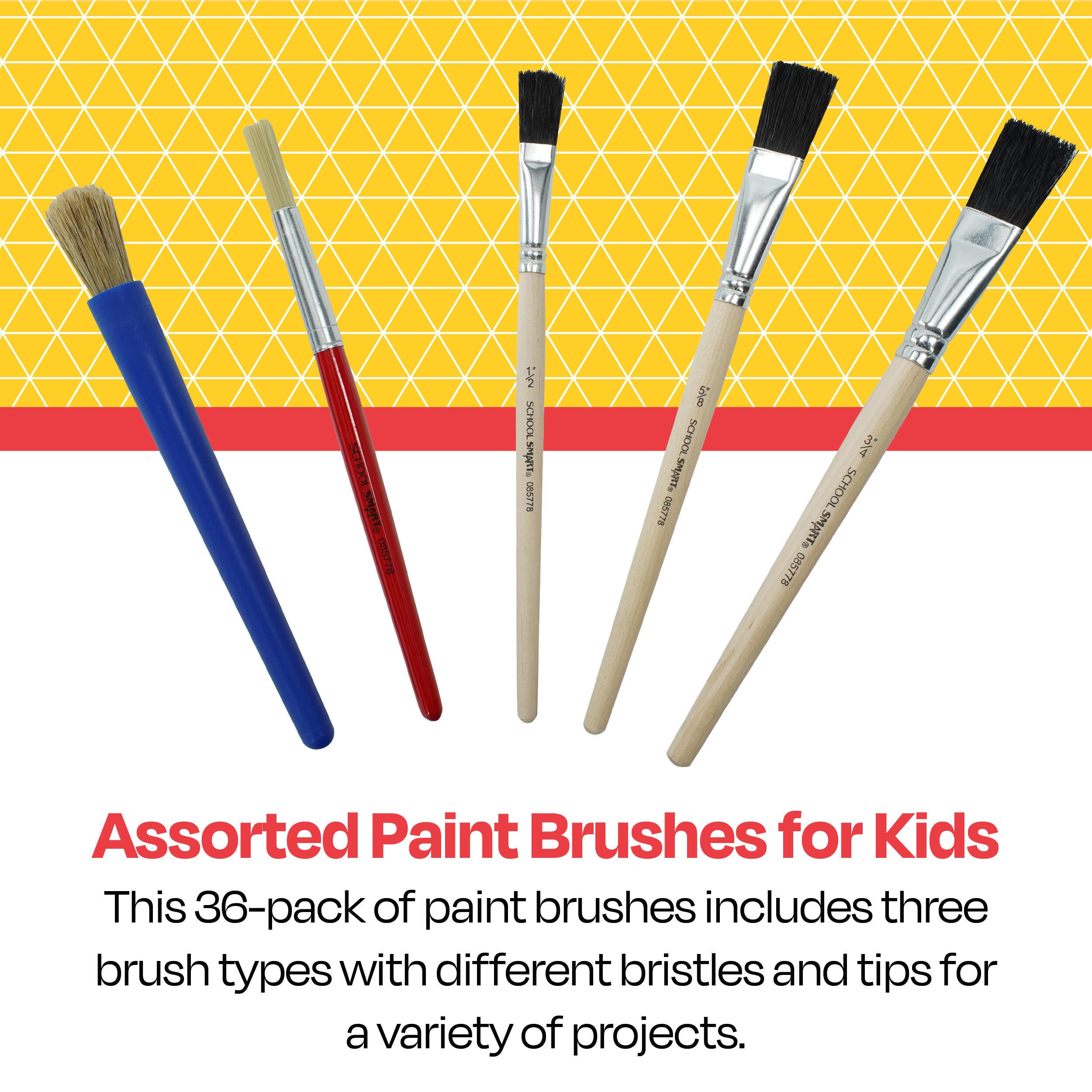 Ideal for every washable paint, tempera, and watercolor need, the School Smart young artist paint brush set helps imaginations soar. The assorted paint brushes have smooth ferrules and are an essential addition to any classroom or art studio. Young artists will love creating different projects with a variety of paint brush types. This set includes 36 art brushes for kids and three different brush types.