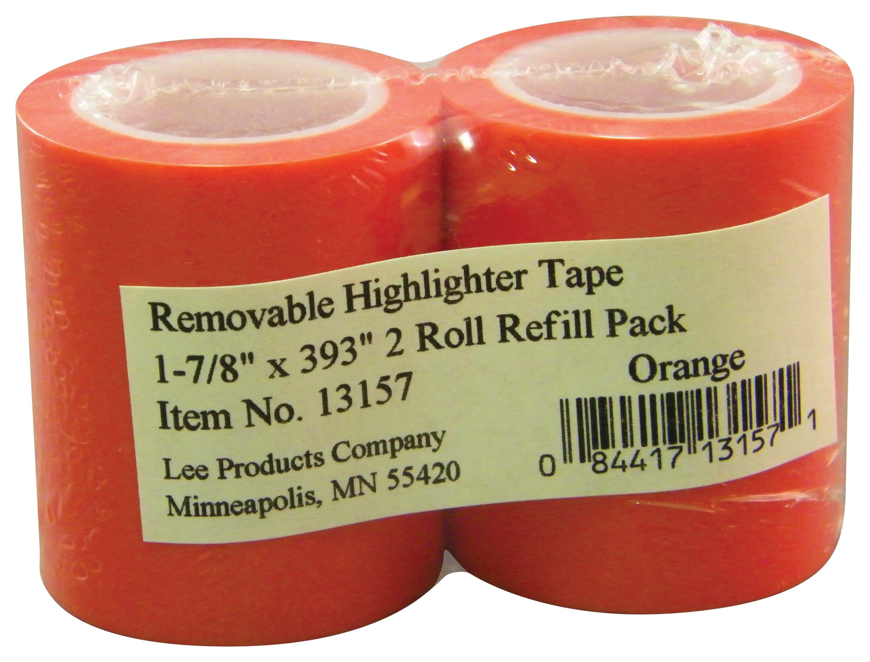 Lee Wide Orange Highlighter Tape Refill measuring 1-7/8 in wide highlights 3 lines of print or spaces. Easy to use by just tearing off as much or as little as desired, applying and/or repositioning it and removing it without residue when its done. Notes or highlighted text can be written on it. For use with 13154 Empty Dispenser.