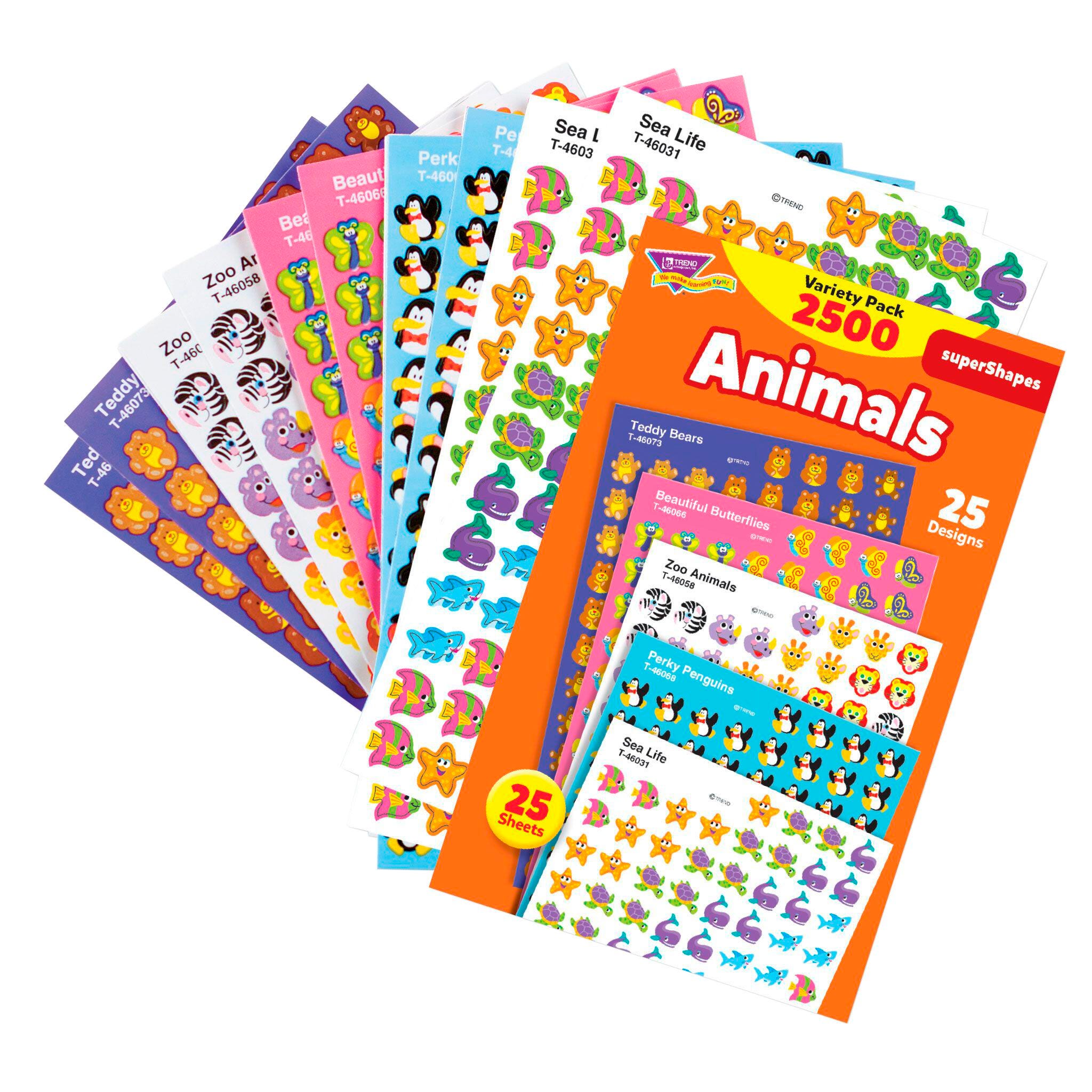 Trend Enterprises Super Shapes Animal Stickers, Incentive Variety Pack, 13/32 in, Pack of 2500