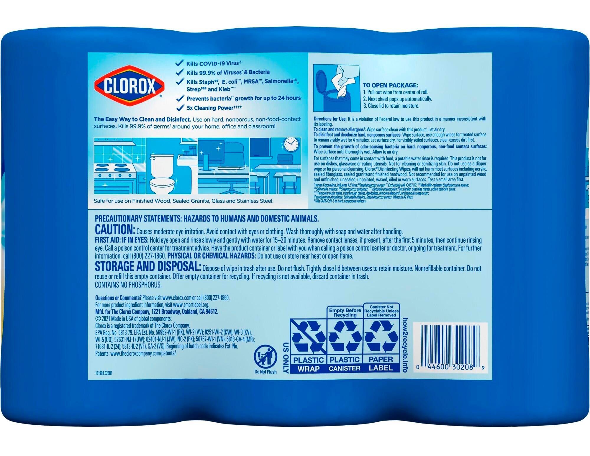 When the flu, colds or other illnesses are on the rise, disinfecting wipes help keep your office fresh, clean and disinfected. Pre-moistened wipes kill 99.9 percent of viruses and bacteria, including cold, flu, E. coli, salmonella, staph and strep. Use them to remove germs from frequently used office equipment, such as desktops, phones, keyboards, doorknobs and mice. Its powerful cleaning technology quickly dissolves grease and fights soap scum for time-saving performance. Balanced formula will not damage equipment and works on a variety of surfaces, including countertops, wood, mirrors and glass, tile, appliances and faucets. Convenient canister keeps these wipes easily accessible for quick cleaning and disinfecting.Features