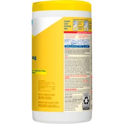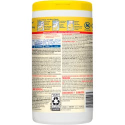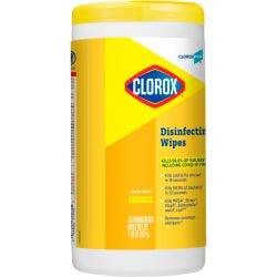 CloroxPro Lemon Scented Disinfecting Wipe Canister contains 75 wipes featuring bleach-free formula that kills 99.9% of bacteria including staph and salmonella. It is a one-step cleaning and disinfecting solution that is perfect for day care centers, offices, schools and restaurants. Quick, convenient pre-moistened individual wipe for cleaning hard surfaces comes in air-tight canister package that keeps it moist and effective. It is sold as 6 per case.Features
