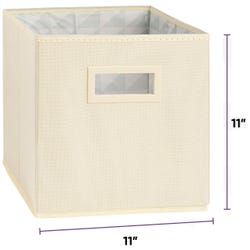 Collapsible Fabric Bin With Handles, 11 Inches, Ivory