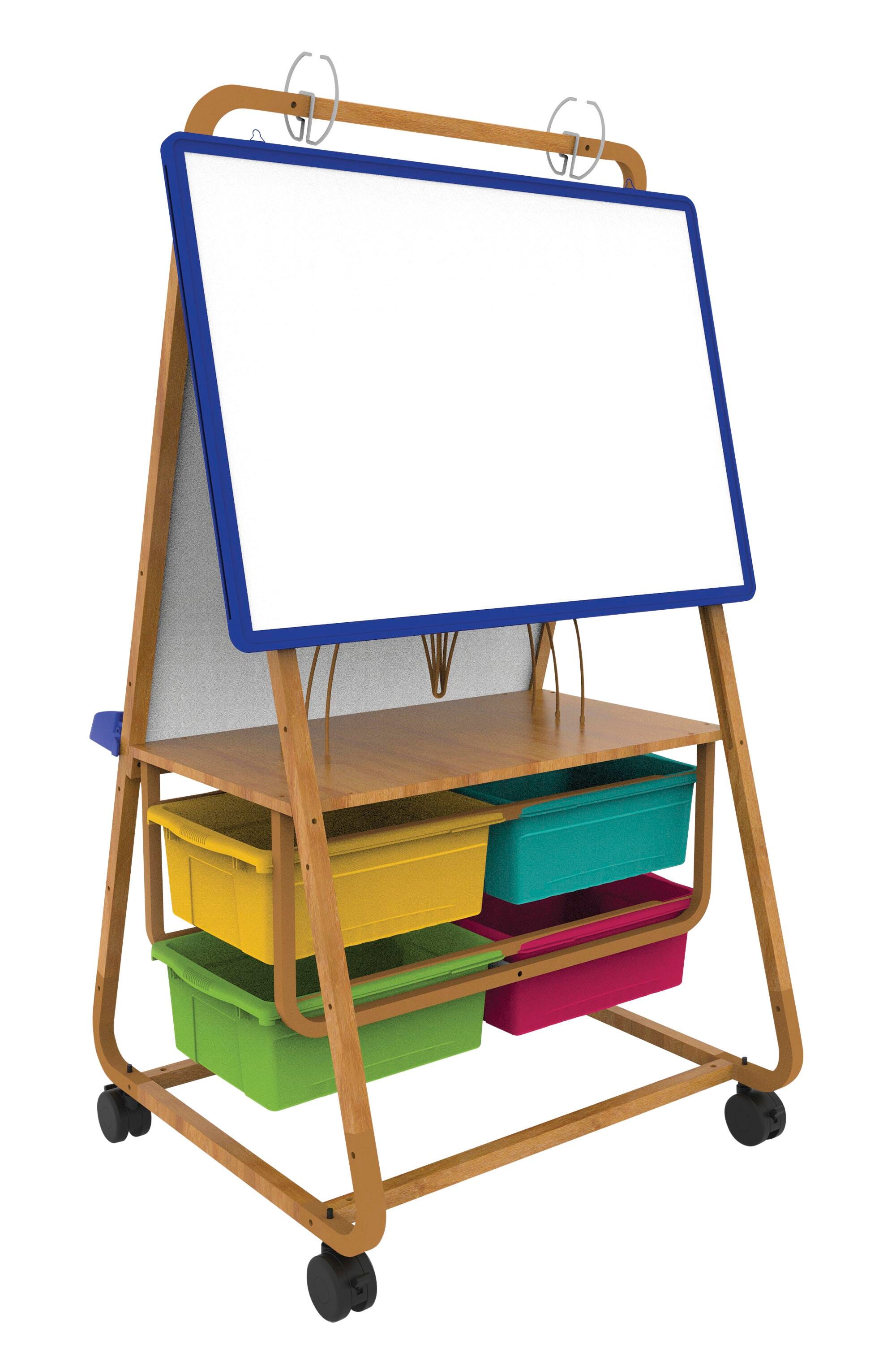 This easel is an essential teaching tool. It combines a chart stand, storage for books and materials, dry-erase surfaces, and a book ledge for storytime. The Bamboo Classic Royal Reading Writing Center was designed to bring natural elements into the classroom and is ideal for neutral or early years environments. This unit is equipped with high-quality casters which allow easy mobility and safely lock in place. For every bamboo product purchased, Copernicus will make a donation to conserve natural panda habitat through the World Wildlife Fund. The full unit measures 33 x 27 x 56-1/2 inches.Features