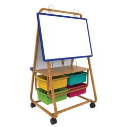 This easel is an essential teaching tool. It combines a chart stand, storage for books and materials, dry-erase surfaces, and a book ledge for storytime. The Bamboo Classic Royal Reading Writing Center was designed to bring natural elements into the classroom and is ideal for neutral or early years environments. This unit is equipped with high-quality casters which allow easy mobility and safely lock in place. For every bamboo product purchased, Copernicus will make a donation to conserve natural panda habitat through the World Wildlife Fund. The full unit measures 33 x 27 x 56-1/2 inches.Features