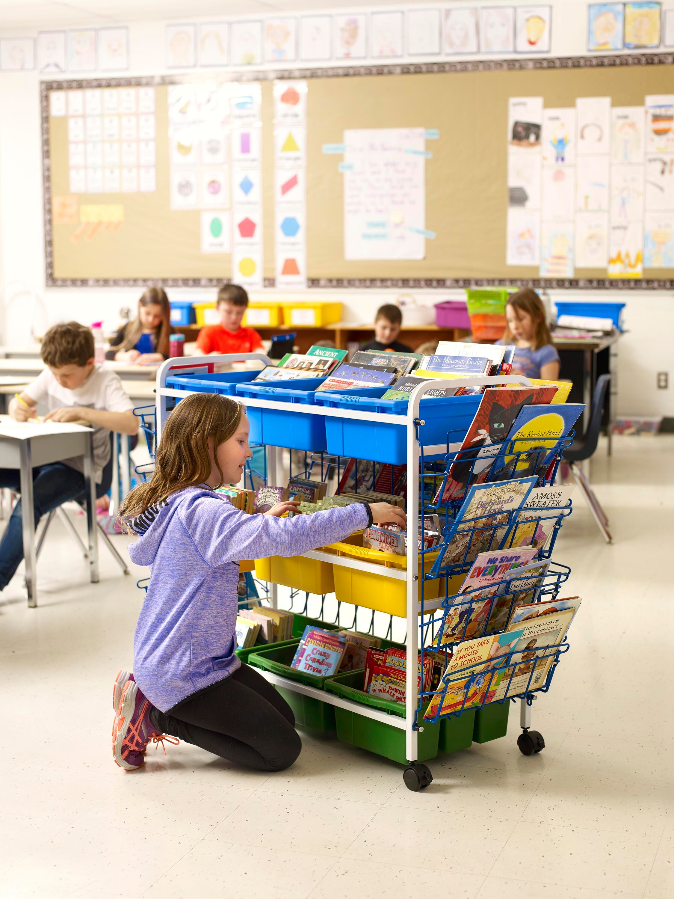 For use as an in-class library where students can help themselves to a book or for makerspace materials and tools.