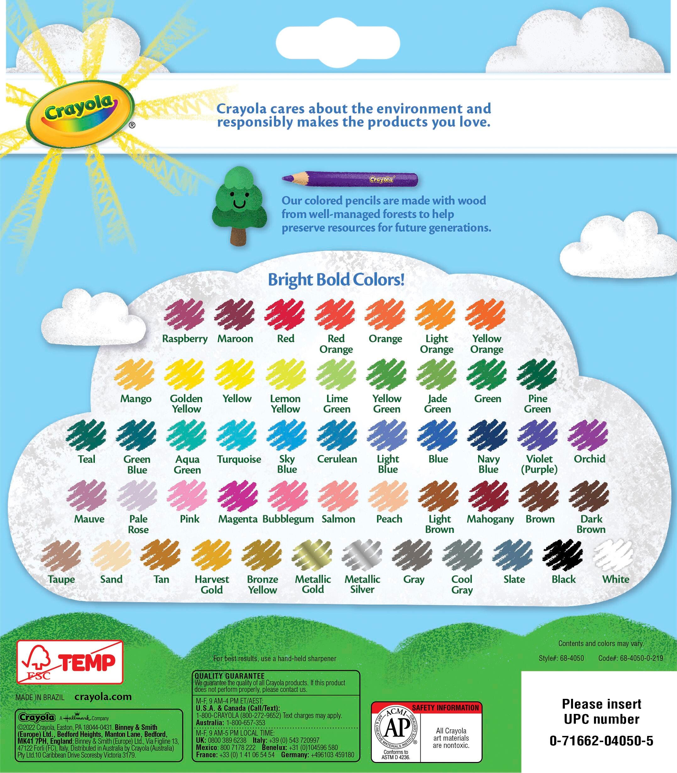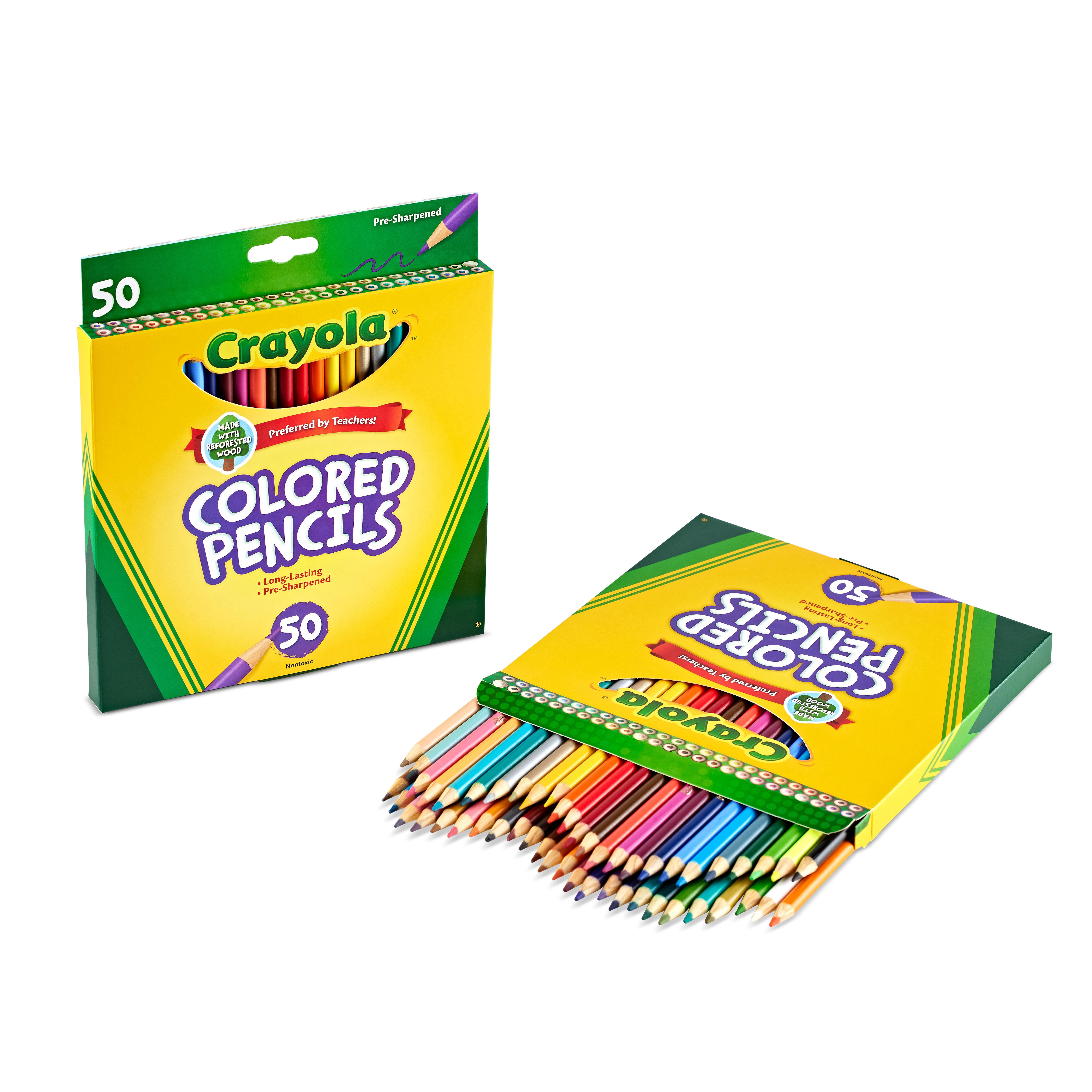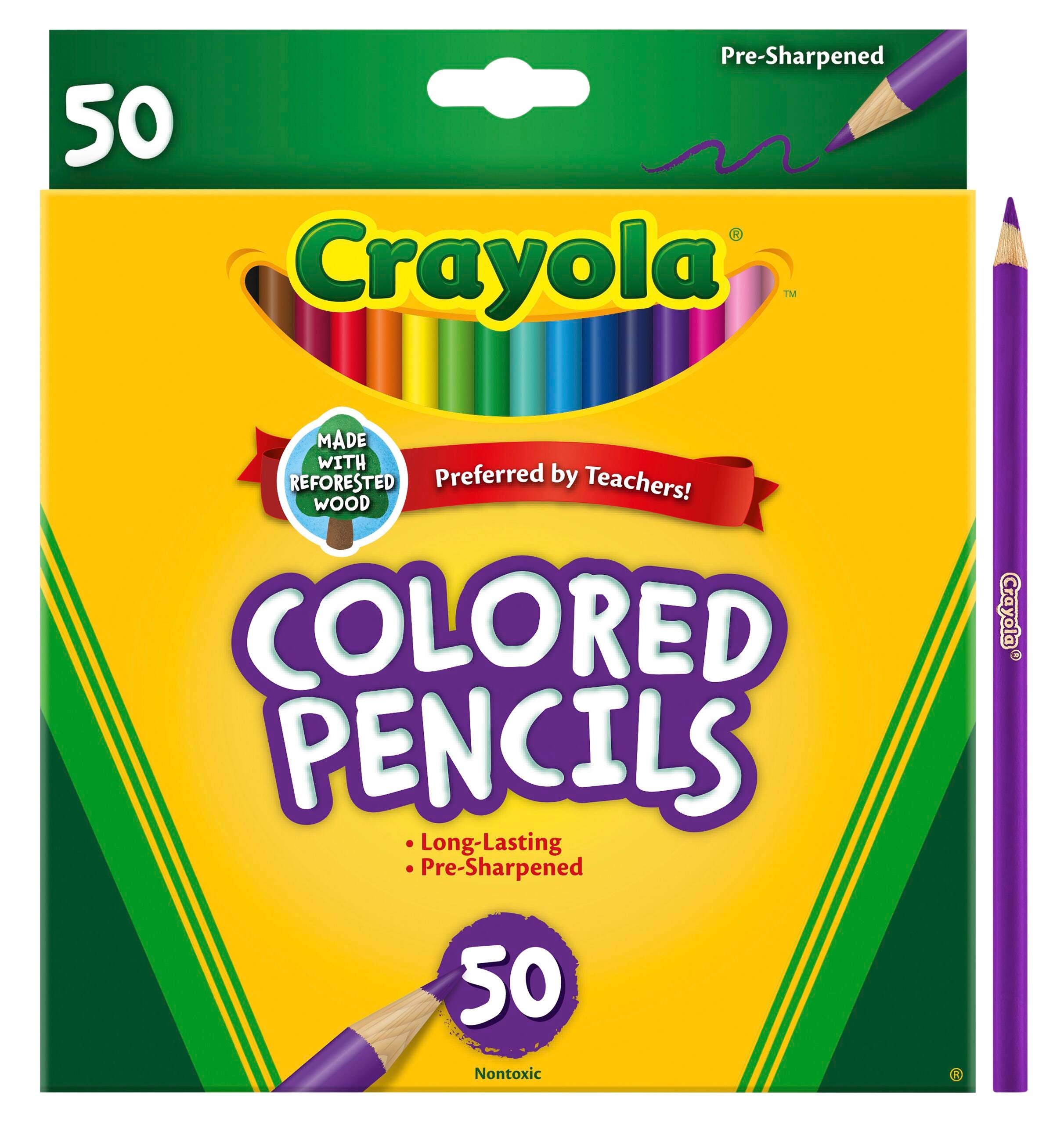 Write, draw, color, and more with this pack of Crayola Colored Pencils. These art tools are ideal for practicing detailed sketching or shading techniques like color mixing and blending to create new and unique shades. The thick 3-1/3 mm lead tips are soft for laying down smooth, non-scratch color but won't break easily under pressure. This pack contains 50 pre-sharpened colored pencils in an assortment of colors.