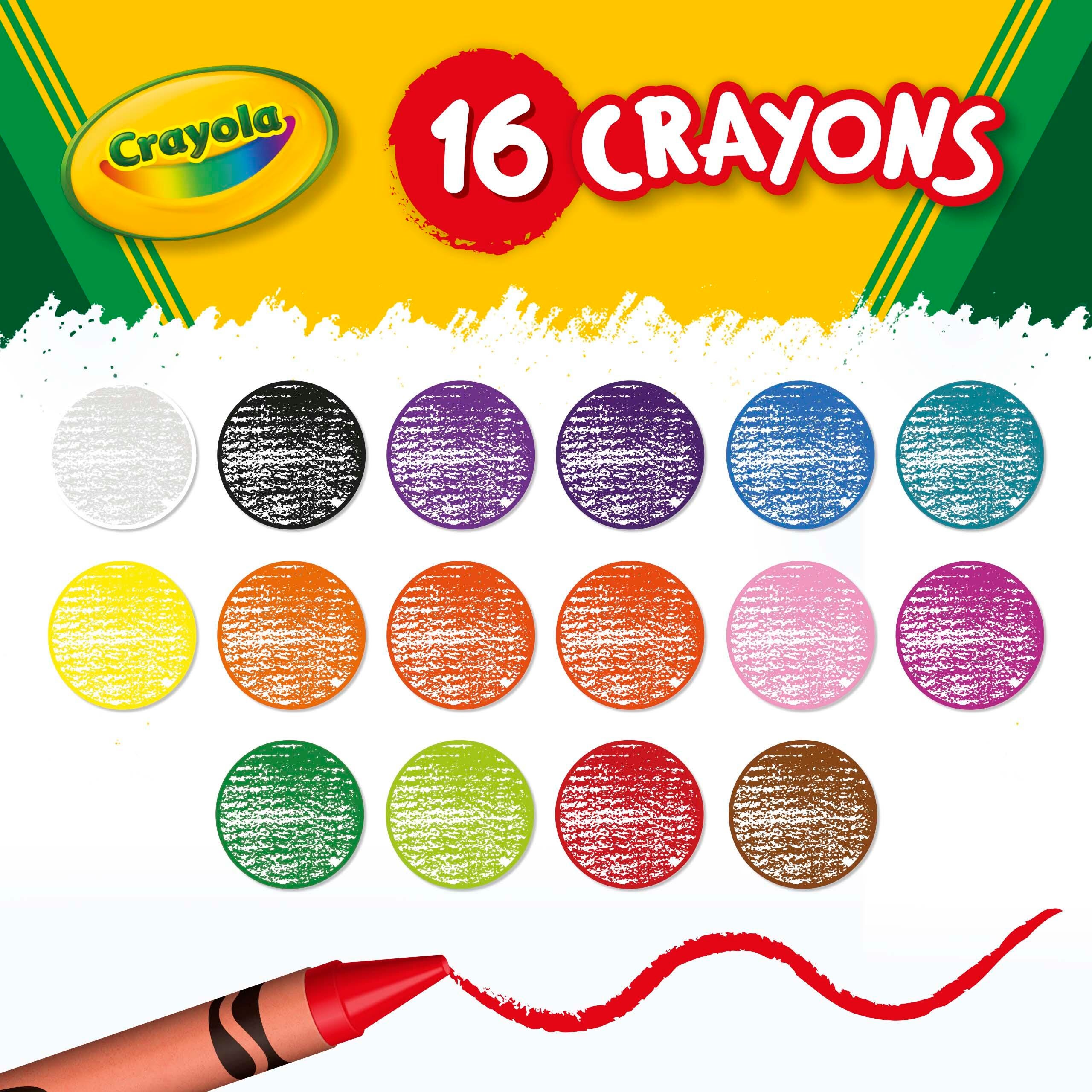 This box of Crayola Crayons delivers the classic art tool that students and teachers love! These crayons are designed to provide hours of colorful fun, with bold and true color, a smooth formula, and a durable construction. This pack contains 16 crayons, 1 in each of the following colors: black, blue, blue green, blue violet, brown, carnation pink, green, orange, red, red orange, red violet, violet, white, yellow, yellow green, and yellow orange.