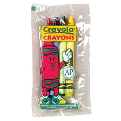 Crayola Crayons deliver creative fun in bold color. Draw, doodle, write, color, and more, thanks to the long-trusted formula that lays down smooth, vibrant marks. This value pack contains 360 cellophane-wrapped packages for easy hand-out at schools, restaurants, childcare centers, and beyond. Each pack contains 4 crayons, 1 each in red, yellow, green, and blue.Features