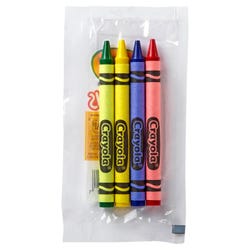 - Cellophane-wrapped crayons come in convenient packs of 4 for easy handout and tear-open