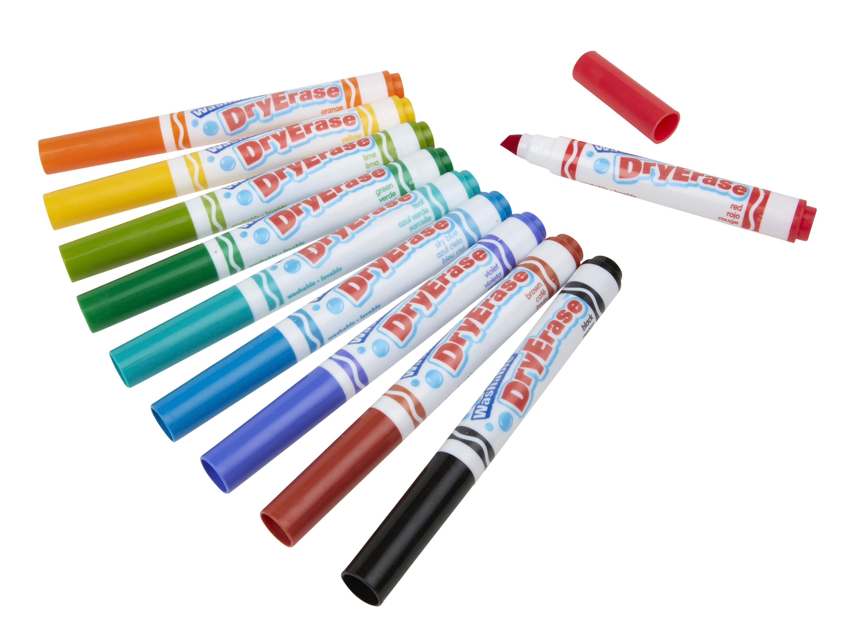 Write, create, erase, and create/write again! From color coding a family whiteboard schedule to making a vibrant work of art, these Crayola Washable Dry Erase markers have your creative and functional needs covered. Dura-Wedge tips are great for creating fine lines or coloring in large areas while note-taking, organizing, or practicing letters, and numbers on dry erase boards. Safe and non-toxic; ideal for kids ages 3 and up.Features