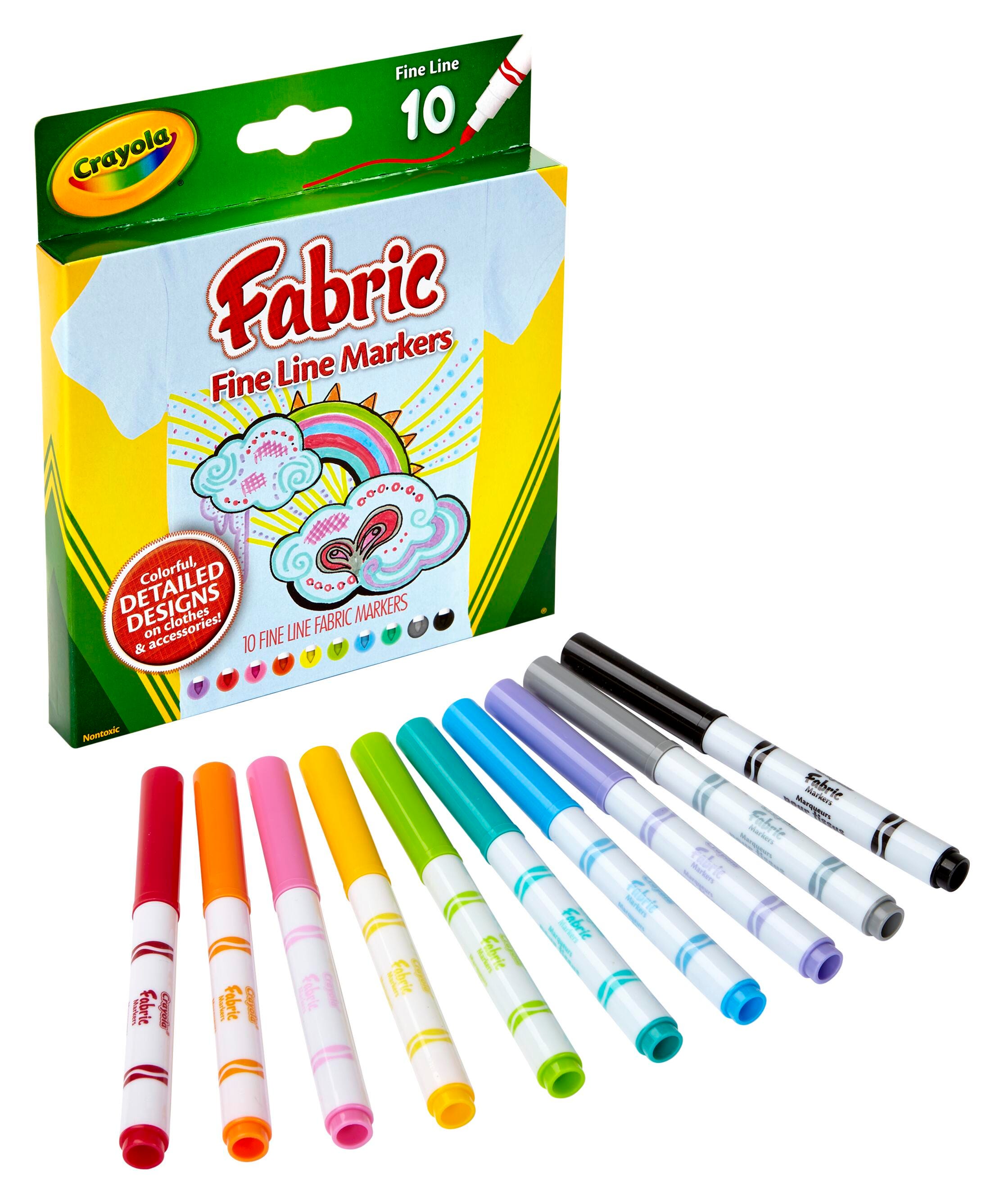 Crayola Fabric Markers, Fine Line, Assorted Colors, Set of 10