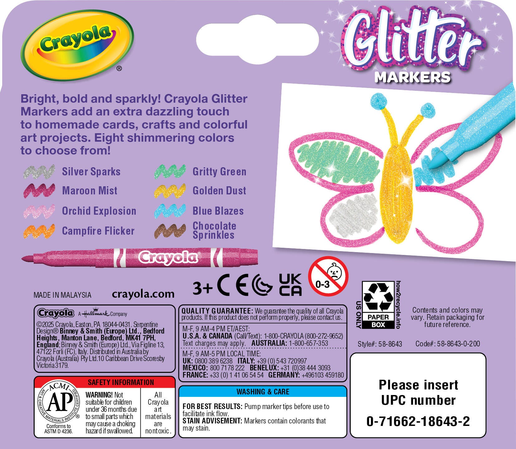Crayola Glitter Markers, Assorted Colors, Set of 8