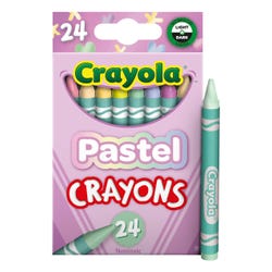 The Crayola Pastel Crayons give artists soft pastel colors that brighten any creative activity! These crayons are a great addition to any coloring collection and feature a uniquely styled hue assortment that makes them perfect for playful coloring projects. Each crayon is double-wrapped to provide extra strength and durability and lays down smooth, consistent color. This pack contains 24 crayons in an assortment of colors.Features