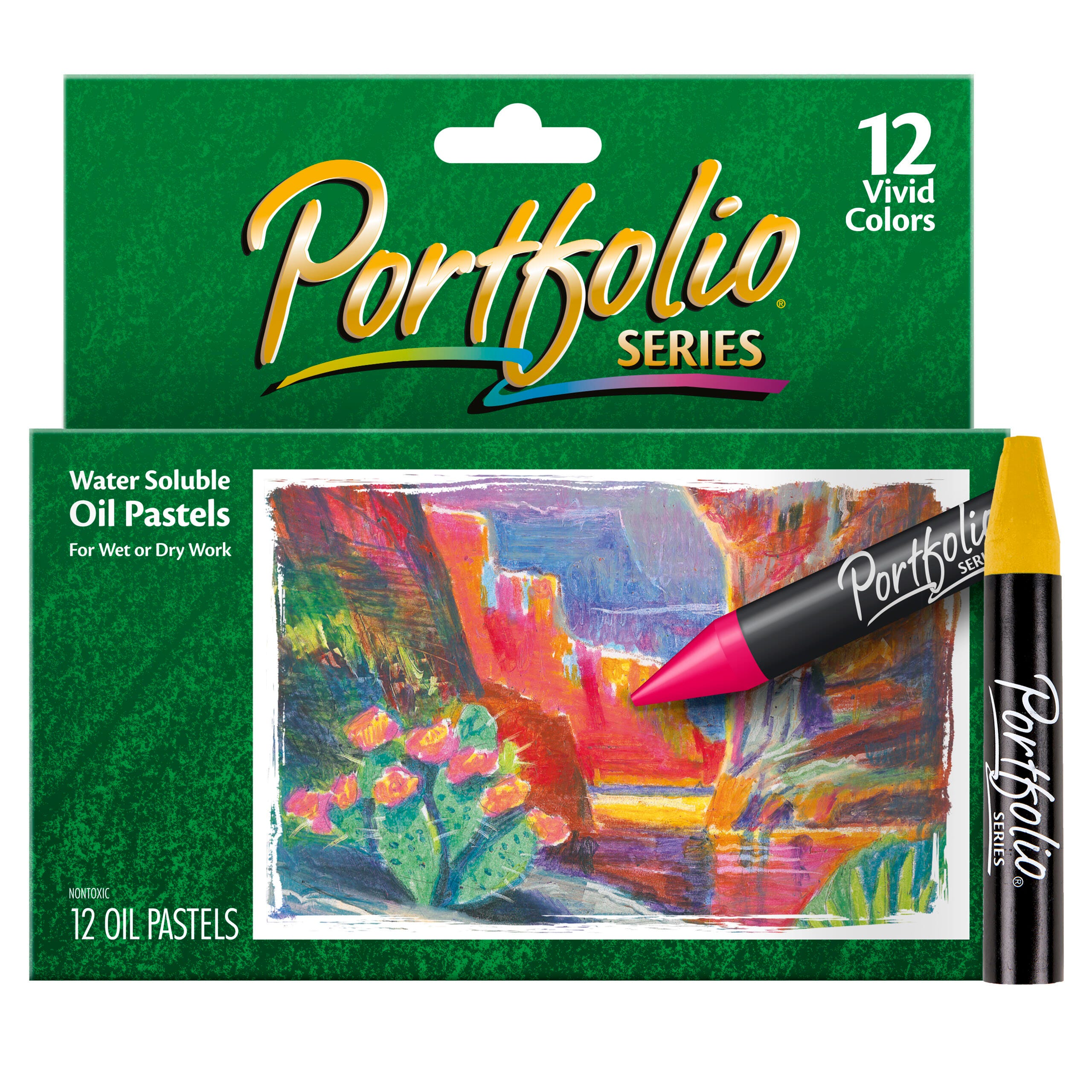 Crayola Portfolio Water-Soluble Oil Pastels offer vibrant colors and a flexible formula that can be used in a variety of techniques. These versatile pastels are suitable for both wet and dry work, and adding water enhances blending and creates beautiful watercolor effects. They lay down smooth, creamy color, and their pointed ends and cylindrical shape make them easy to handle. This set contains 12 oil pastels in an assortment of colors.