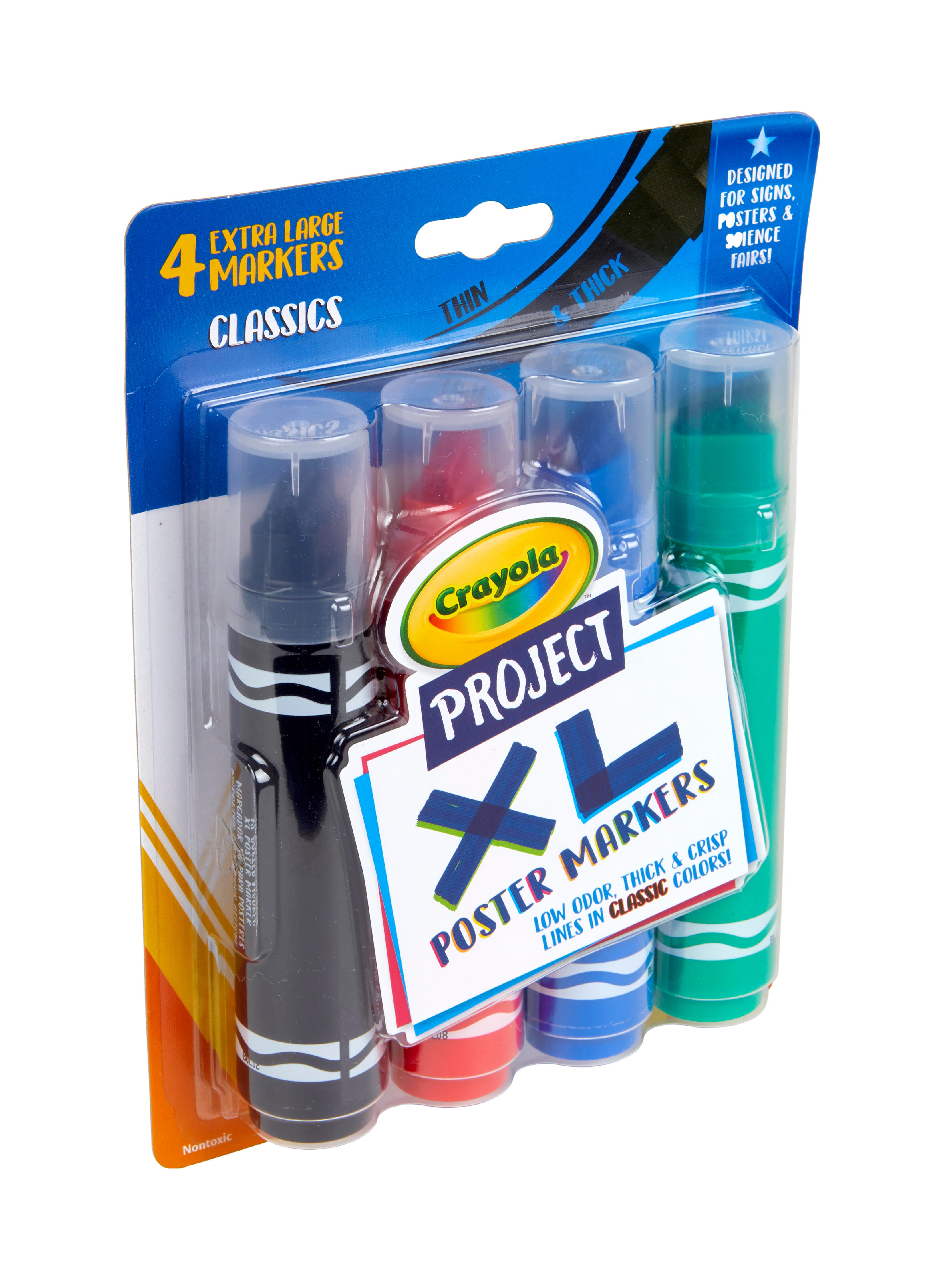 Crayola Project XL Poster Markers, Assorted Classic Colors, Set of 4