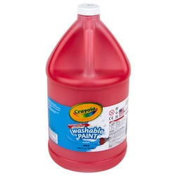 Enhance any artwork with high-quality and vibrant Crayola Washable Paint! The paint's thick, creamy consistency provides rich color and an opaque covering on most surfaces. Plus, this child-friendly paint is easily washed from skin and almost all clothing. This brilliant red paint comes in a 1 gallon plastic jug with a screw lid so it is easy to pour—great for large groups or big projects in the classroom, childcare center, or home.Features