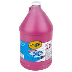 Enhance any artwork with high-quality and vibrant Crayola Washable Paint! The paint's thick, creamy consistency provides rich color and an opaque covering on most surfaces. Plus, this child-friendly paint is easily washed from skin and almost all clothing. This dazzling magenta paint comes in a 1 gallon plastic jug with a screw lid so it is easy to pour—great for large groups or big projects in the classroom, childcare center, or home.Features