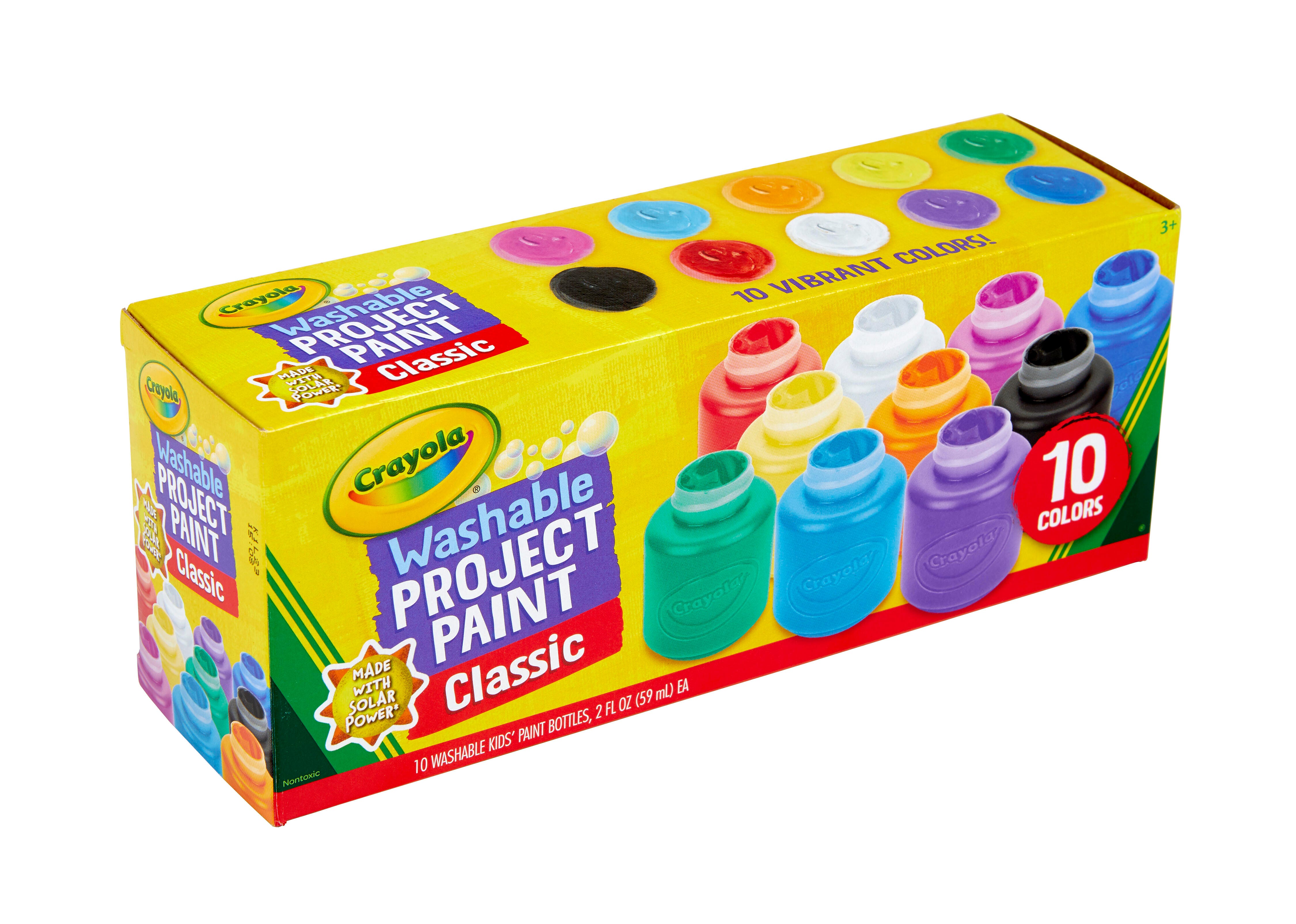 Crayola Washable Project Paint, 2 Ounce Bottles, Assorted Classic Colors, Set of 10