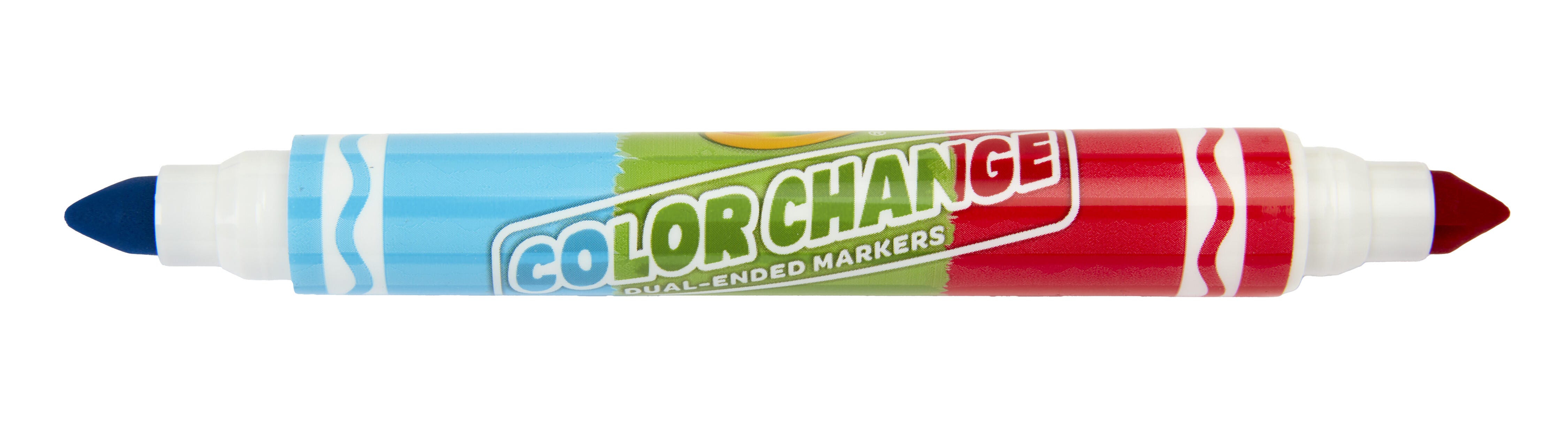 Take your coloring game to the next level with the Crayola Dual-Ended Color Changing Markers! These markers deliver 2 colors per marker and over 24 distinctive color combinations, so you can create vibrant works of art. Unique blending technology allows you to layer one color on top of another to form a unique third color for endless artistic possibilities. Each marker has a conical and chisel tip to handle a variety of coloring and drawing techniques. Safe, nontoxic, and great for students of all ages. This set contains 8 dual ended markers.Features