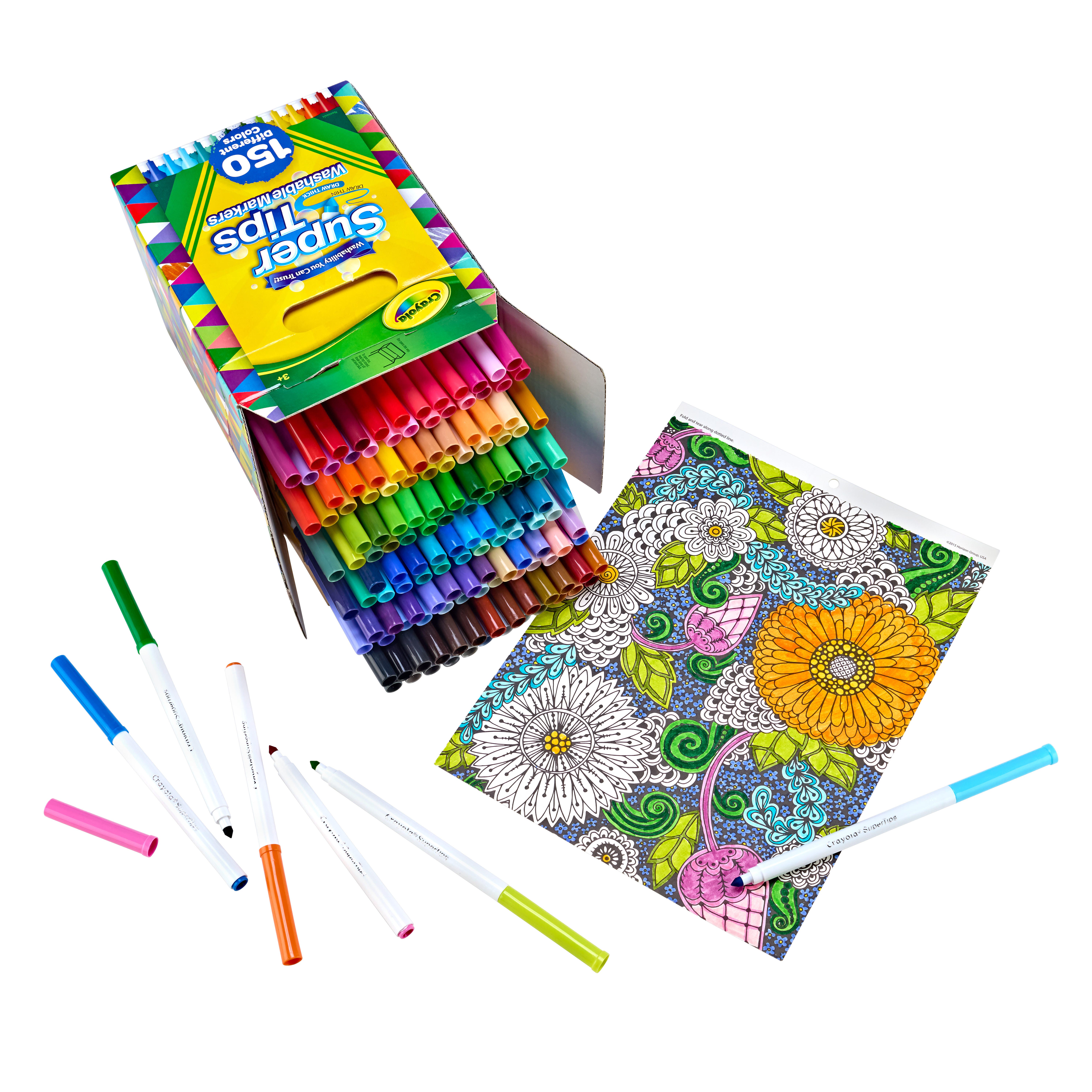 • Crayola Super Tips Washable Markers, Assorted Colors, Set of 150