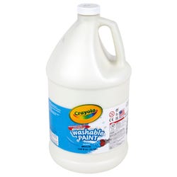Enhance any artwork with high-quality and vibrant Crayola Washable Paint! The paint's thick, creamy consistency provides rich color and an opaque covering on most surfaces. Plus, this child-friendly paint is easily washed from skin and almost all clothing. This pure white paint comes in a 1 gallon plastic jug with a screw lid so it is easy to pour—great for large groups or big projects in the classroom, childcare center, or home.Features