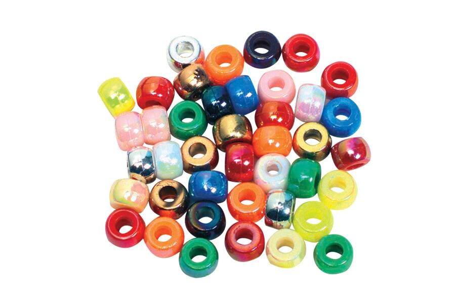 Pony beads are a great option for use in making necklaces, bracelets, key chains and much more. Beads are made of durable plastic.Features