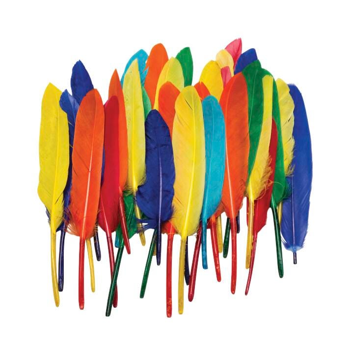 - Beautiful and vibrantly colored feathers are great for headbands, topping off old-fashioned quill "pens", costumes, and more