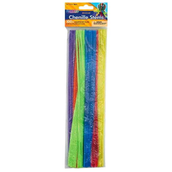 Creativity Street Standard Chenille Stems in hot colors measures 1/8 in x 12 in. Standard stem is a classroom staple for modeling, multi-media and more. Stem is great for a wide variety of craft projects and sold as 100 per set.