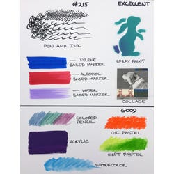 This Crescent 215 Illustration Board measures 5 x 7 inches, with a 14-ply medium-weight construction. The smooth hot press surface is suitable for many different media including pen and ink, acrylics, and watercolors. Designed to provide increased contrast in finalized illustration work. Boards are sold in a school pack of 40.Features