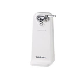 Deluxe electric can opener in white with chrome accents Cuisinart quality-engineered motor system PowerCut blade Single-touch operation Sturdy base prevents sliding or tipping Opens any standard size can Removable activation lever for easy cleaning All materials that come in contact with food or liquid are BPA free Cord storage Limited 3-year warranty