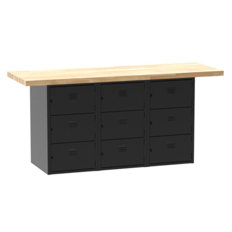 Diversified Spaces Wall and Island Bench with 9 Horizontal Lockers, 72 x 24 x 32-3/4 Inches, Maple Top, Black Base