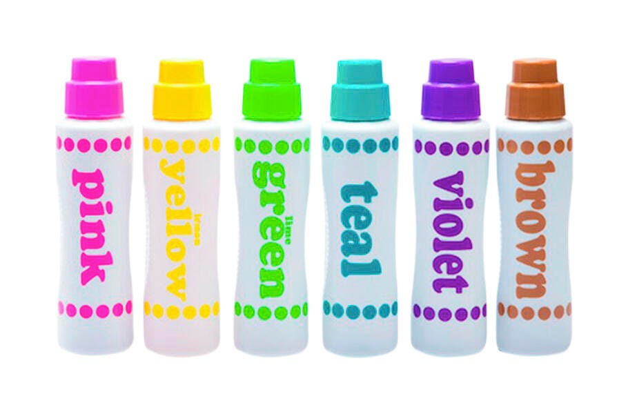 The Do-A-Dot Art paint washable markers are perfect for parents and teachers! Arts and crafts just got easier and cleaner with these paint dauber markers. Let your imagination run wild with all of the wonderful colors of each set. Each set is incredible for developing hand eye coordination and color recognition for young children. Each marker contains generous amount of ink that never dries out and yet dries quickly on the page. Standard Size dauber tip measures at 3/4 inches.Features