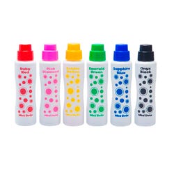 The Do-A-Dot Art paint washable markers are perfect for parents and teachers! Arts and crafts just got easier and cleaner with these paint dauber markers. Let your imagination run wild with all of the wonderful colors of each set. Each set is incredible for developing hand-eye coordination and color recognition for young children. Each 2-1/2 ounce marker contains a generous amount of ink that never dries out and yet dries quickly on the page. Standard-size dauber tip measures at 3/4 inches. This set contains one marker in each of the following colors: red, yellow, blue, green, orange, and purple.Features