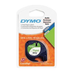 DYMO LetraTag Label Tape, 1/2 Inch x 13 Feet, Paper, White, Pack of 2
