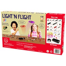 Build it, light it, and launch it! With E-Blox Power Blox Light-N-Flight Building Blocks you can build cool models like an airplane with a real working propeller or and fan launcher that launches the fan high in the air. Make your own game out of it and see who can land the fan in a bucket! Add motor, lights, and switches to this set of building block toys to stimulate young minds with creativity, imagination, and science.Features