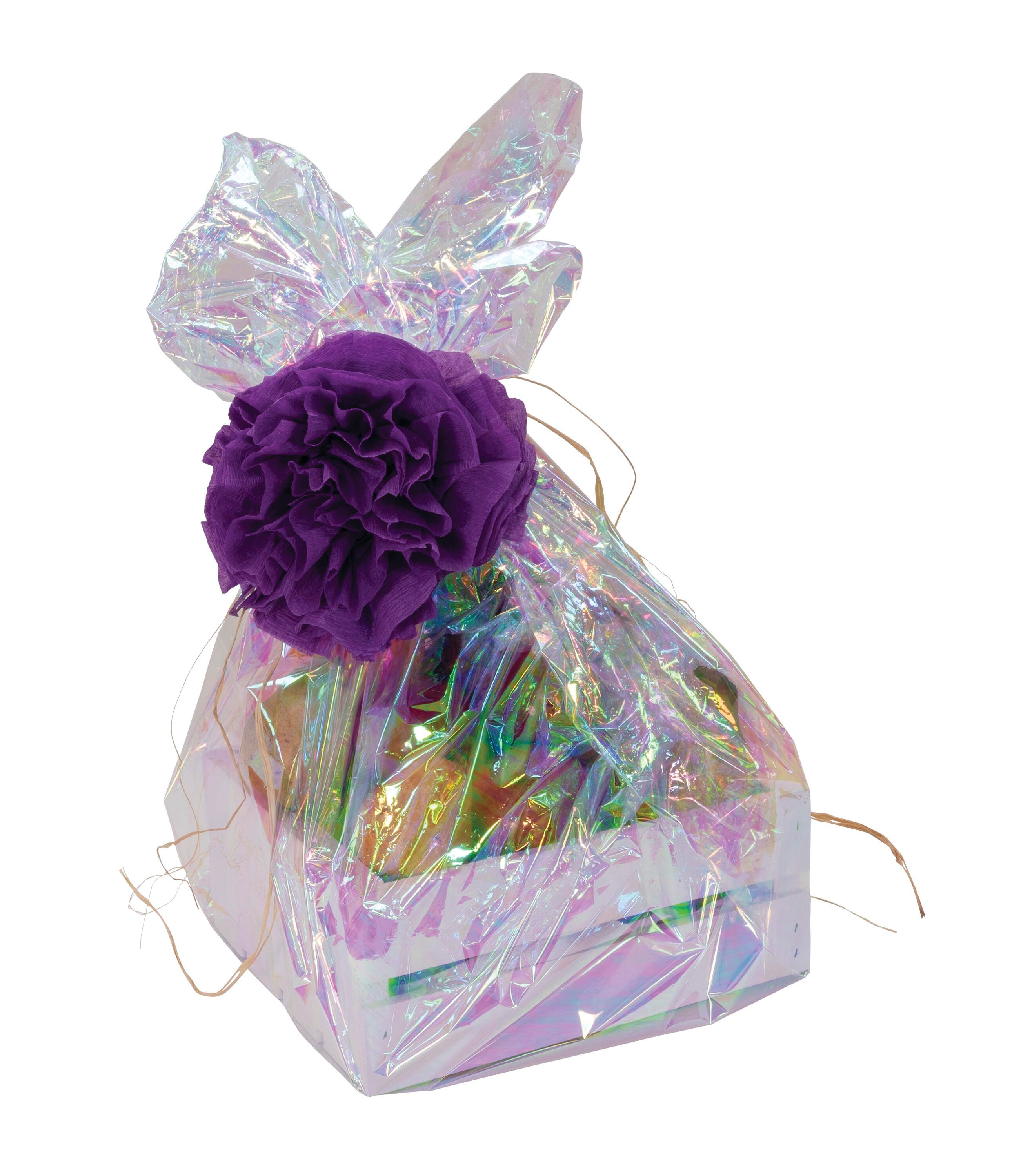 This Iridescent Glittering Cellophane Roll from Creativity Street® is great for wrapping party favors, making holiday decorations, stagecraft, mask making, and lots more. Various shades and tints of colors are displayed with this versatile, transparent, moisture-proof cellophane. Cellophane comes on a conveniently large roll to make it easy to cut it into specific sizes and shapes. The roll measures 36 inches wide and 12-1/2 feet long.Features