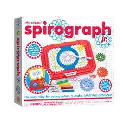 Now even the youngest creative minds can make amazing designs with the Spirograph Jr. design set. Jumbo-sized pieces make creating Spirograph art fun and easy for little hands, and an easy-to-carry drawing tablet doubles as a work station and handy storage case to keep everything neat.Features