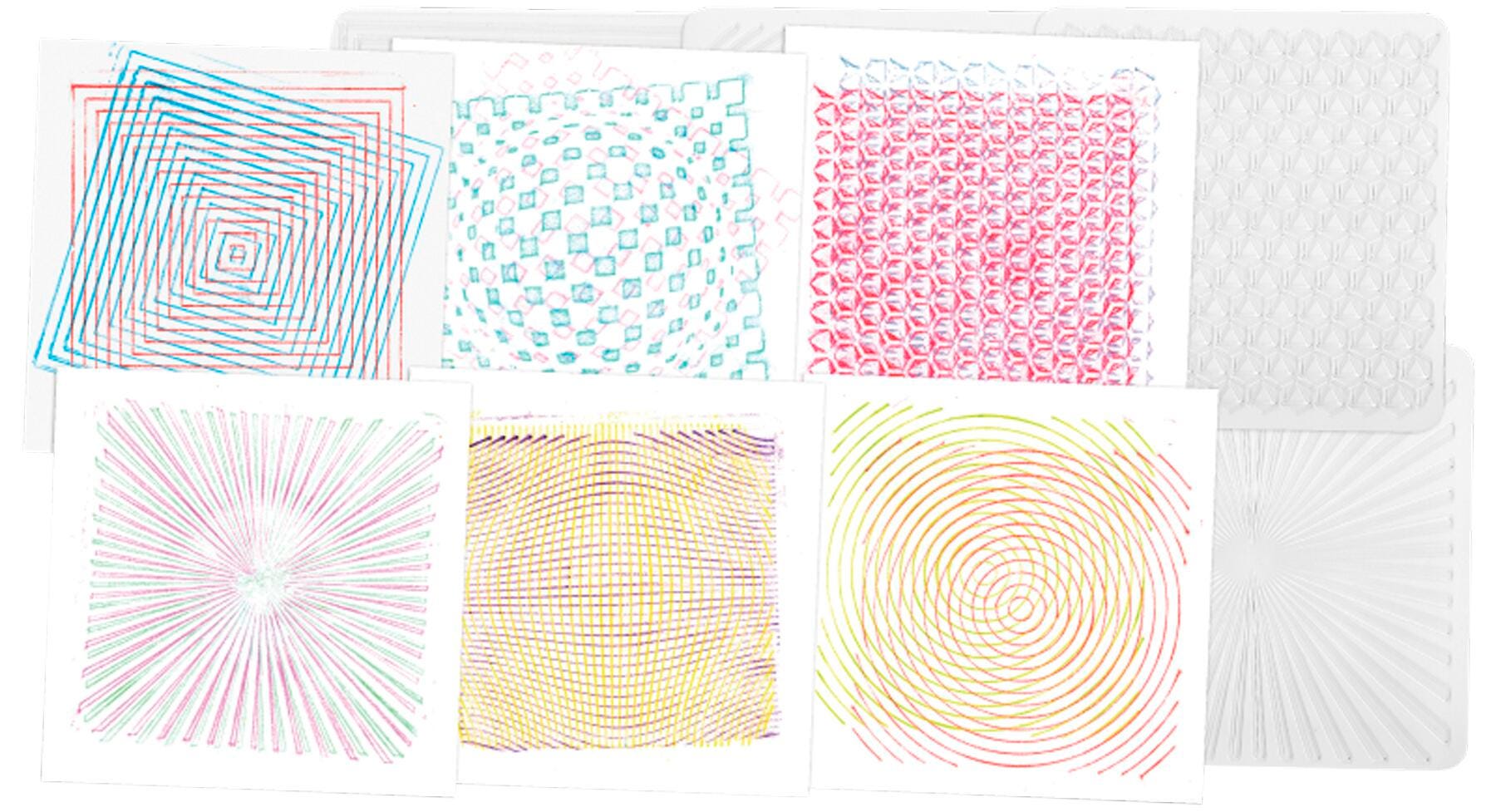 Reveal the kaleidoscope of mesmerizing visual effects with Optical Illusion Rubbing Plates! This versatile tool is a valuable addition to any art curriculum, offering endless hours of engaging fun. Simply place paper over the rubbing plate and rub any medium across to reveal beautiful illusions. Fill creations in with markers and colored pencils to add a personalized touch. The opposite side of the plate can be filled with molding clay to create captivating 3D sculptures. Fill plates with white glue and food coloring to create vibrant sun catchers or use on papier-mâché projects to add depth and dimension to your creations. The possibilities are endless with this set of unique rubbing plates!Features
